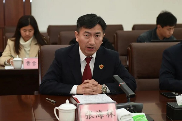 通化铁路运输检察院检察长张海林介绍通化铁检为民办实事情况