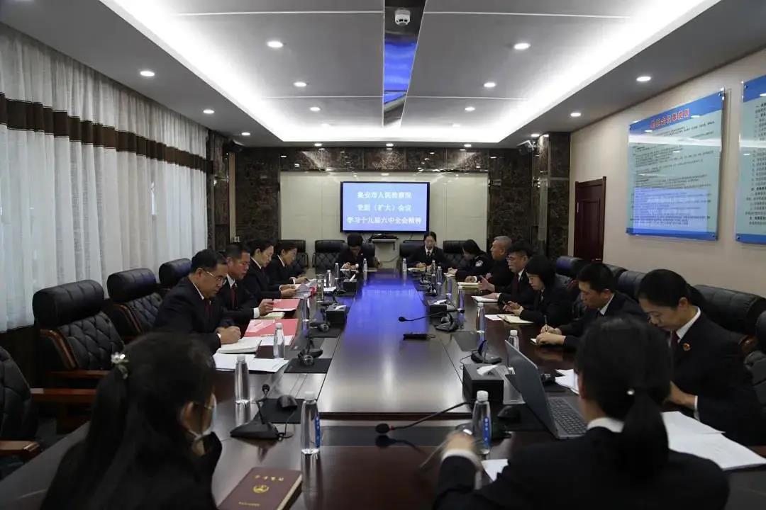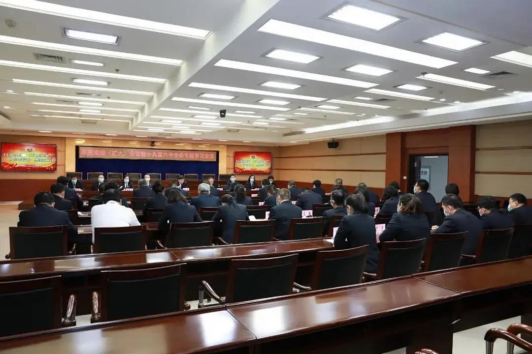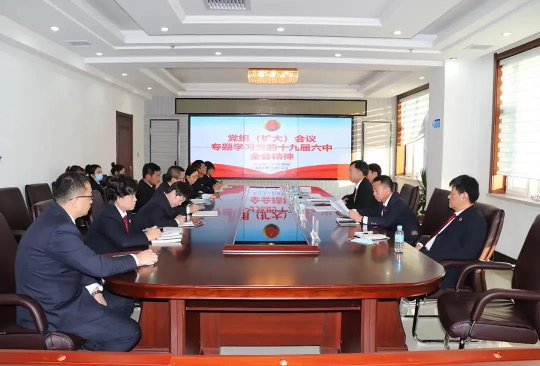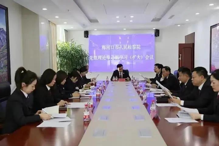 梅河口市人民检察院召开党组理论中心组学习(扩大)会议,深入学习贯彻党的十九届六中全会精神,班子成员及各部门负责人结合学习交流心得。会议要求,要进一步提高政治站位,掀起全员学习全会精神热潮,采用“线上+线下”相结合的方式,与党史学习教育、政法队伍教育整顿工作相结合,围绕工作重点,真正把学习贯彻全会精神的成效落实到具体工作上。