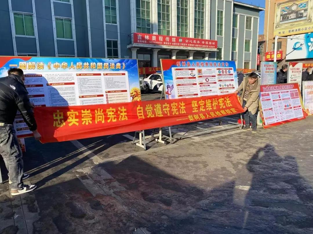 12月3日上午,梨树县人民检察院开展“以习近平法治思想为指引,坚定不移走中国特色社会主义法治道路”为主题的宪法宣传活动。针对广大群众的法治需求和法律热点问题,设置普法宣传点,通过发放宣传资料、面对面答疑解惑等方式,让群众深切感受法在身边、生活有法,自觉遵守宪法,坚决维护宪法。