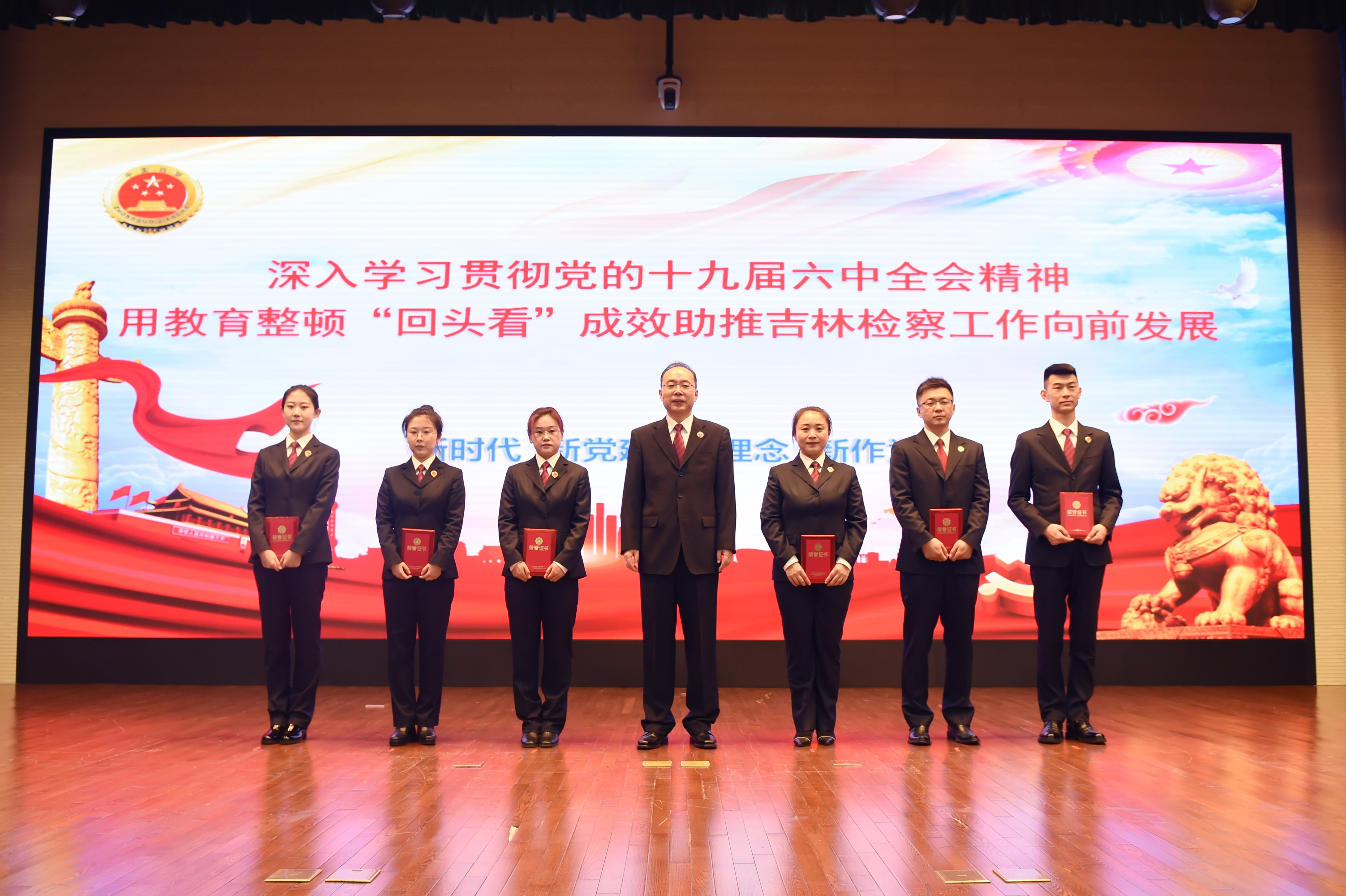 党组书记、检察长尹伊君为获奖者颁奖。