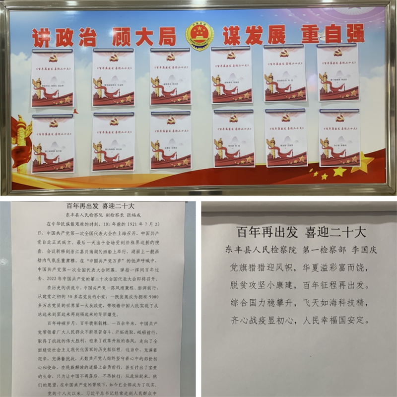 东丰县检察院机关党支部组织开展庆“七一”主题征文活动。党员们以《百年再出发 喜迎二十大》为题,围绕中国共产党带领中国人民从站起来到富起来,从富起来到强起来,再到实现“两个一百年”奋斗目标等内容,结合自身的感受及所见所闻,抒发真情真意,歌颂伟大的中国共产党。