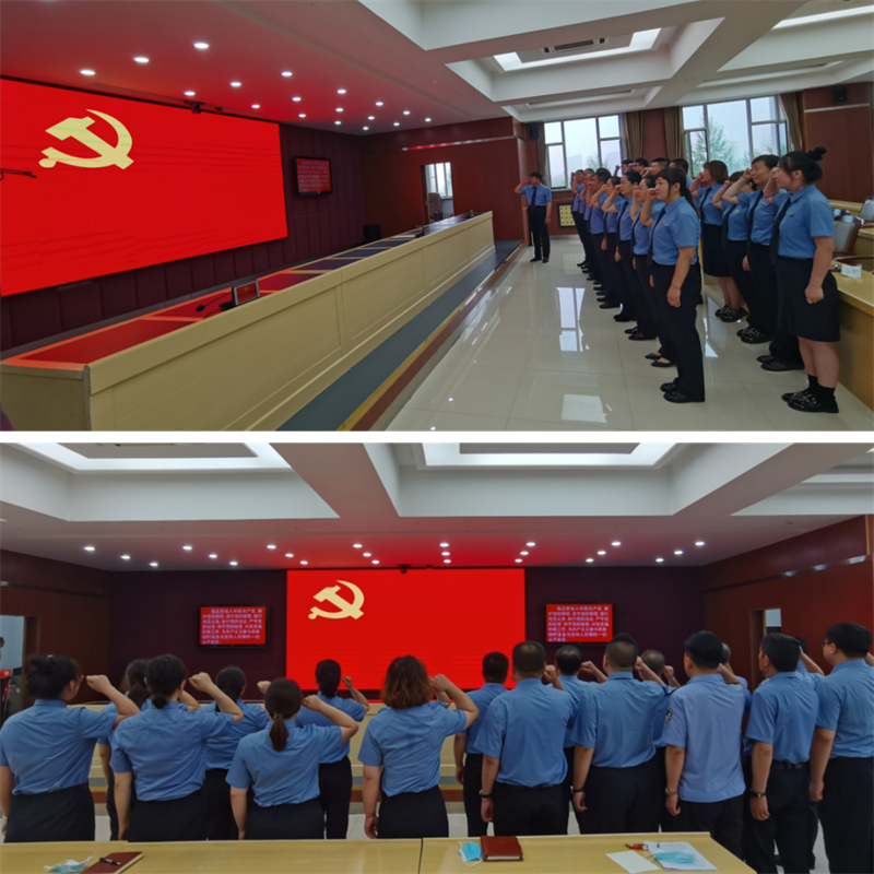 “我志愿加入中国共产党……随时准备为党和人民牺牲一切,永不叛党。”党员在党支部书记的带领下,面对党旗,高举右拳,庄严宣誓。铿锵有力的宣誓,表达了大家对党的无限忠诚、热爱和听党话、跟党走的坚定决心。