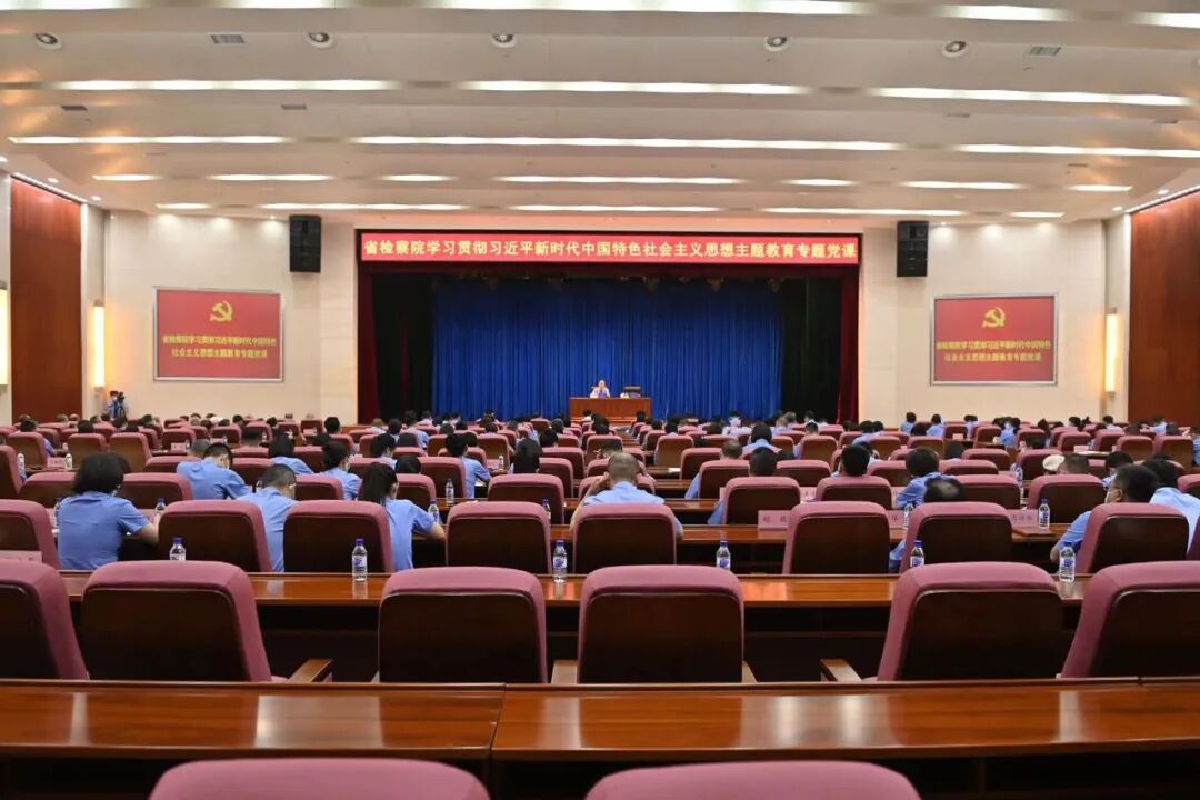按照主题教育工作安排,6月29日,乳交 党组书记、检察长尹伊君以《深入学习贯彻习近平新时代中国特色社会主义思想 努力推进检察工作现代化》为题,为全省检察人员和机关离退休老干部代表讲主题教育专题党课。