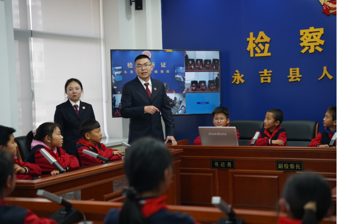永吉县人民检察院举办“检爱同行·法伴成长”检察开放日活动。45名“小可爱”来到12309检察服务中心、公开听证室、远程视频提审室等,与干警互动交流,了解体验检察工作。索妮摄