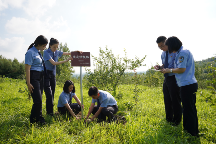 永吉县检察院对涉案补植复绿林地进行了编号建档管理,定期更新档案信息,分别制作了身份标识牌,并通过立牌公示的方式,进一步宣传检察机关生态修复的坚定态度。新华网发 索妮摄