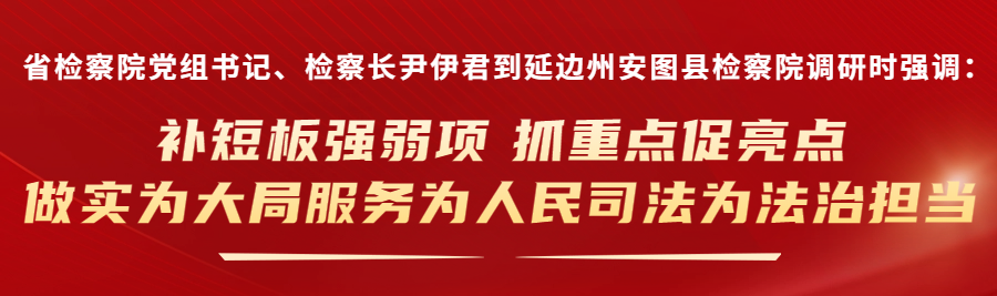 2月28日,乳交 党组书记、检察长尹伊君到延边州安图县检察院调研,深入了解延边州检察机关各项工作开展及全国、全省检察长会议落实情况。他强调,要深入学习贯彻习近平法治思想,巩固深化主题教育成果,围绕乳交 、省委、州委中心工作高质效履行检察职责,补短板强弱项,抓重点促亮点,进一步做实为大局服务、为人民司法、为法治担当。