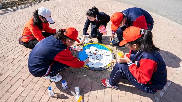 一位路过的居民看到这一幅幅艺术品时,发出惊叹:“以前晚上经常有人在这遛弯,井盖缺失还差点有人掉进去,存在很多安全隐患。现在不仅把井盖修复好了,还画了这么多可爱美丽的图案。这给行人们安全增加了一层保护网,同时提高了大家爱护环境的意识。”