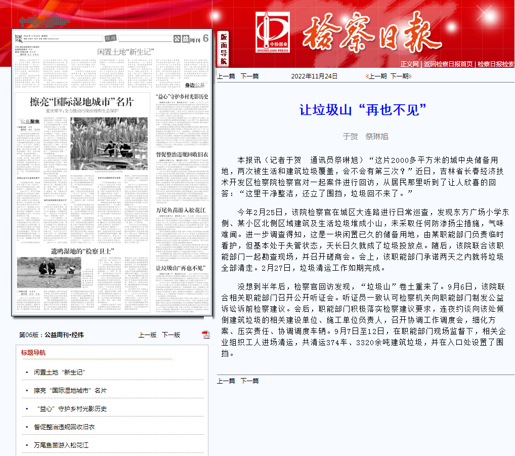 “这片2000多平方米的城中央储备用地,两次被生活和建筑垃圾覆盖,会不会有第三次?”近日,吉林省长春经济技术开发区检察院检察官对一起案件进行回访,从居民那里听到了让人欣喜的回答:“这里干净整洁,还立了围挡,垃圾回不来了。”