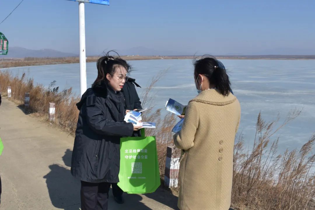 活动中,珲春林区检察院会同珲春林区基层法院、珲春森林公安分局、珲春林业有限公司组成“候鸟巡护普法小队”,在候鸟聚集地——敬信湿地龙山湖水库,向前来赏雁观鸟的群众发放野生动植物保护宣传册及宣传单,耐心地讲解非法破坏野生动植物资源的相关法律法规,以及野生动植物保护的重要意义。