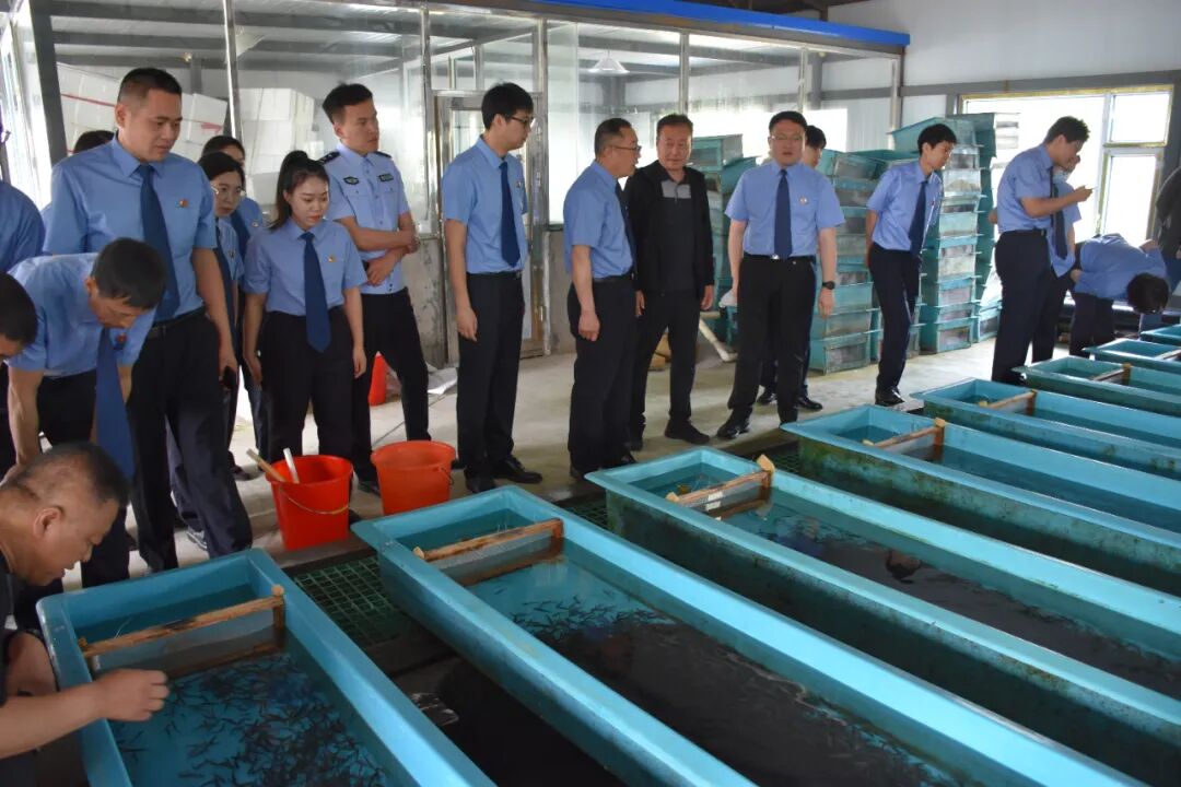 随后,在着讲解员的详细介绍下,干警们参观了保护基地,了解了大麻哈鱼的保护及繁殖饲养相关知识。