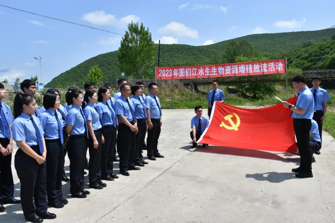 6月6日是全国“放鱼日”,为保障图们江流域水生生物多样性,增殖水生生物资源,在第九个全国“放鱼日”来临之际,珲春林区人民检察院与珲春市人民检察院组织干警前往密江河大麻哈鱼国家级水产种质资源保护公益诉讼保护基地,联合开展“增殖放流护生态·和谐共生促发展”主题党日活动。