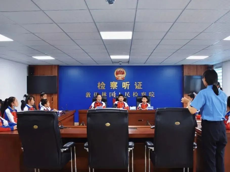 哼唱着欢快的童谣,5月26日,敦化市第六小学校的30余名“小小朋友”来到了敦化林区人民检察院小燕子未检工作室,以参加“检爱同行,共护花开”主题检察开放日活动的方式,提前庆祝国际儿童节。