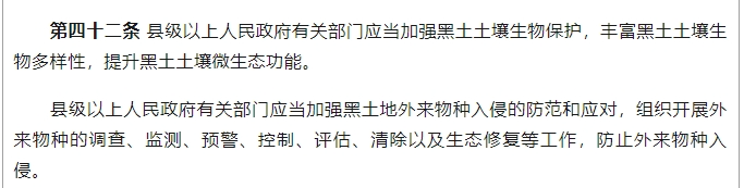 向省人大常委会提出立法建议,建议在2023年4月1日实施的《吉林省黑土地保护条例》修订稿中增加防治外来物种入侵的内容,已得到采纳。