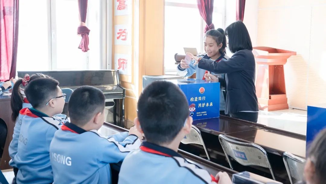 通榆县人民检察院鹤小白未检办案团队来到通榆县第二实验小学分年级、分年龄开展了“开学第一课”法治宣讲活动。“我知道有人王者荣耀已经上星耀了,怎样才能玩得好?”同学们半开玩笑地说“要勤奋,还有和队友配合。” 随后,检察官姐姐便顺着同学们感兴趣的游戏进行延伸,将游戏中的语音播报与实际生活中的涉法问题相结合,告诉同学们遇见校园欺凌时,如何既能见义勇为、敢于正当防卫,又能见义巧为、保护自身安全。