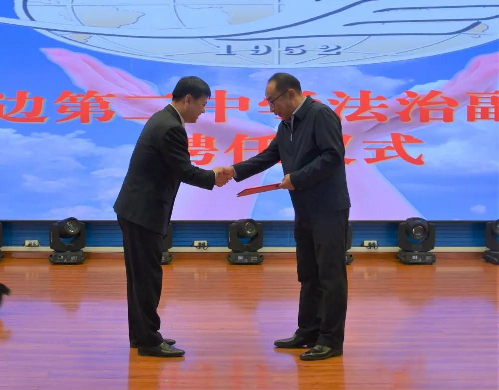 聘任仪式上,延边第二中学党委书记、校长徐忠炜宣读聘任文件,并为金杰检察长颁发聘任证书。接着,检察官们向同学们发放了法治宣传册,让同学们在日常学习和生活中更加深入了解法律知识。