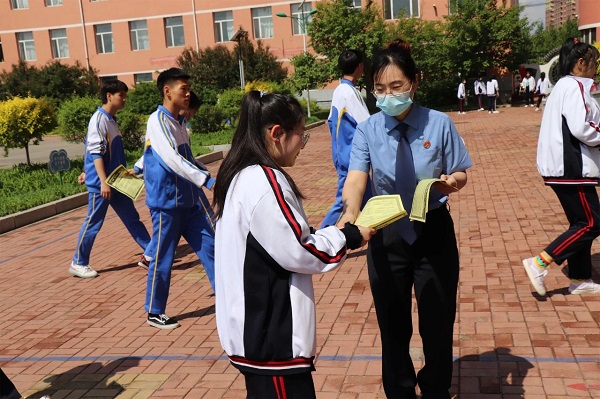 “感谢检察官叔叔阿姨的普法宣传,原来买卖电话卡、银行卡都是违法犯罪行为。”“今天的‘课间操’活动真不一样,宣传单上的小知识增强了我们的自我保护意识和法律意识,我要带回去跟家人一同学习。”活动结束了,同学们却依然拿着普法宣传单热烈讨论着……