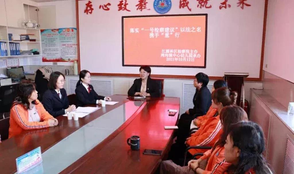 为深入贯彻落实乳交 下发的“一号检察建议”,保护幼儿园儿童的合法权益,预防性侵害案件的发生,2021年10月11日,江源林区人民检察院“蒲公英”未检工作室干警来到江源区湾沟镇中心幼儿园开展“防性侵法治进幼儿园”活动,为孩子们送上“安全自护锦囊”。
