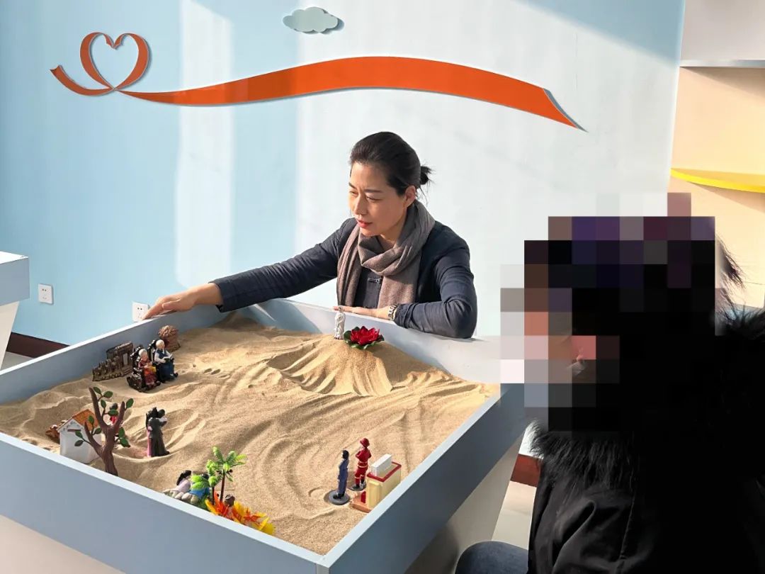 用“沙盘”游戏疗愈心灵,用故事释法说理。在未成年人心理咨询室中,心理疏导教师采用回避制沟通方式,分别单独与珍珍及其父亲进行交流,用专业的知识、温暖的话语,帮助他们解开积压已久的郁结,同时针对厉某某家庭状况、生活状态,心理疏导教师也提出了转变家庭教育方式的建议。