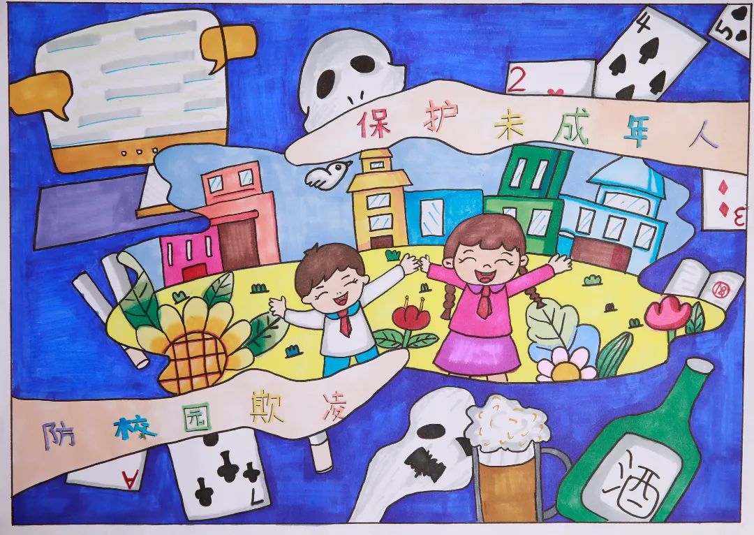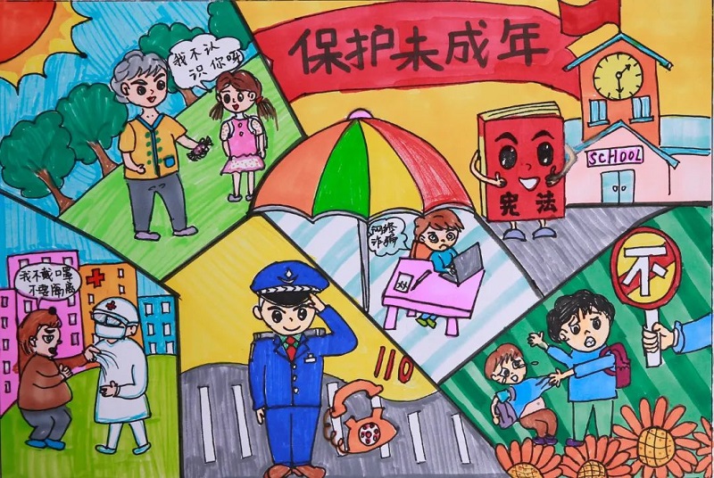 今年的六一正值《未成年人保护法》和《预防未成年人犯罪法》实施一周年,龙井市人民检察院与龙井市教育局共同组织开展了“未成年人法治手绘画廊”活动,邀请全市未成年学生以“以法治之名,保护少年的你”和“护助少年儿童健康成长,拒绝有害出版物及信息”为主题描绘出自己心中的“法”。