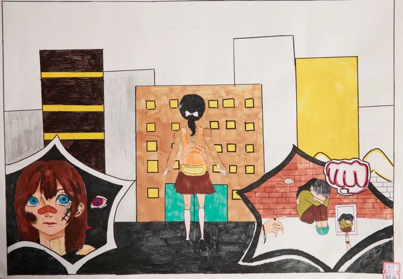 龙井市中小学生积极参加此次活动,用手中的铅笔、水粉、水彩笔画出一幅幅法治图画。在征集的200余幅作品中,孩子们用画笔描绘着如何拒绝校园欺凌、远离网络暴力、拒绝吸烟饮酒,敢于向违法犯罪说“不”!展现了少年眼中的“法”。