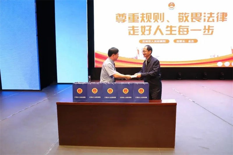 金杰还与吉林市第一中学校领导围绕“一号检察建议”落实、检校共建、校园安全等进行了座谈,并为吉林市第一中学赠送了法律图书。该校校长张彦明代表一中接受书籍并表示衷心感谢,同时期盼持续开展检校合作“法治进校园”活动,不断助推平安校园、法治校园建设。