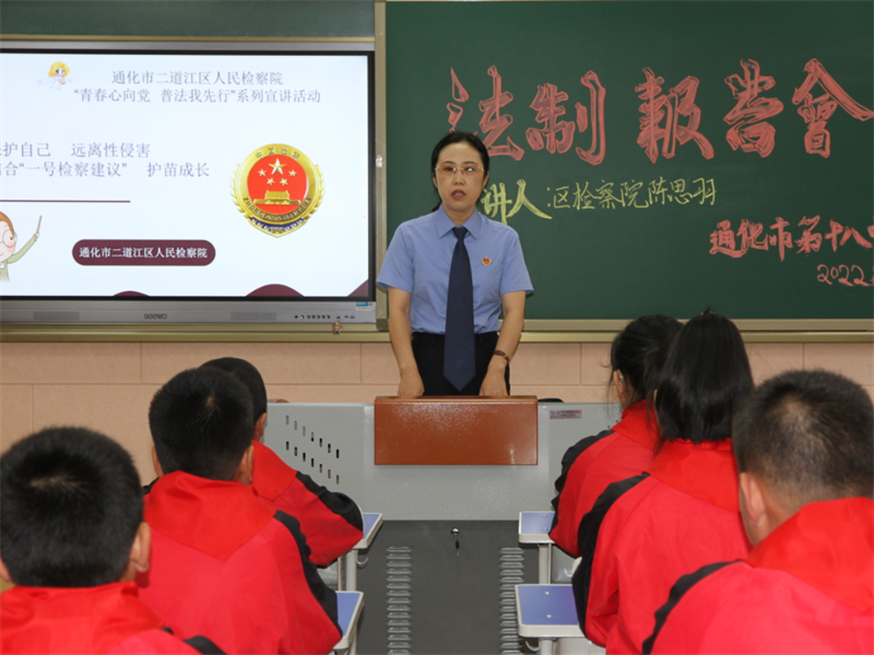 近日,通化市二道江区人民检察院未检讲师团检察官们马力全开,奔赴辖区中小学、幼儿园,为同学们送去了以“一号检察建议”“预防性侵害”为主题的开学第一课。