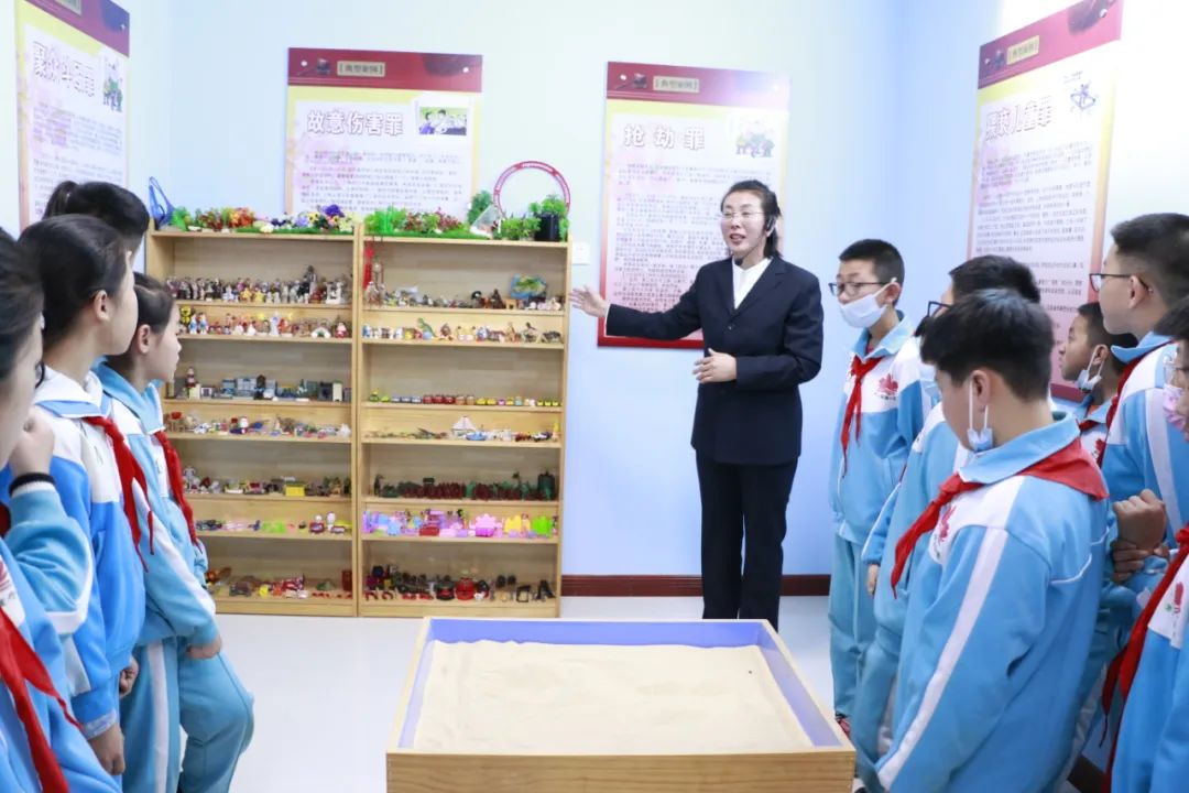 该基地是桦甸市唯一一家综合性法治教育基地,建筑面积共445平方米,分为伟人之光、远离毒品、违法与犯罪、未成年人检察制度、“冰凌花”未检品牌、青少年法治书画展、沙盘游戏等七个参观区。除了传统的释法形式,检察官还通过动漫、微电影、模拟法庭等立体的体验形式,为同学们上了生动的法治课。