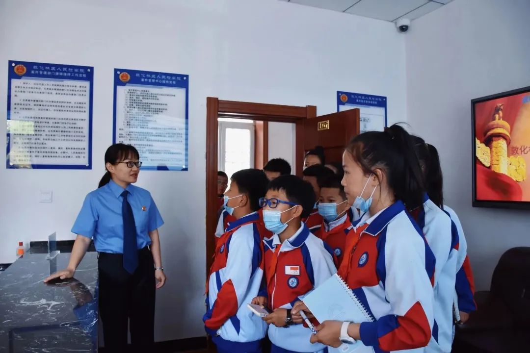 哼唱着欢快的童谣,5月26日,敦化市第六小学校的30余名“小小朋友”来到了敦化林区人民检察院小燕子未检工作室,以参加“检爱同行,共护花开”主题检察开放日活动的方式,提前庆祝国际儿童节。