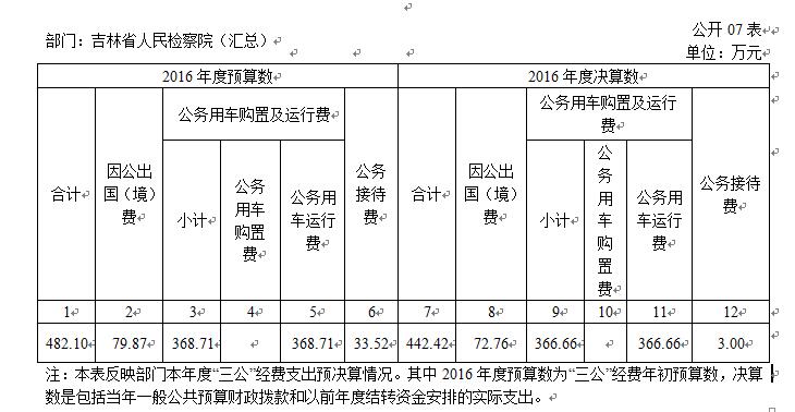 2016年“三公”经费财政拨款支出决算中,因公出国(境)费支出决算为72.76万元,占16.44%;公务用车购置及运行费支出决算为366.66万元,占82.88%;公务接待费支出决算为3.00万元,占0.68%。具体情况如下: