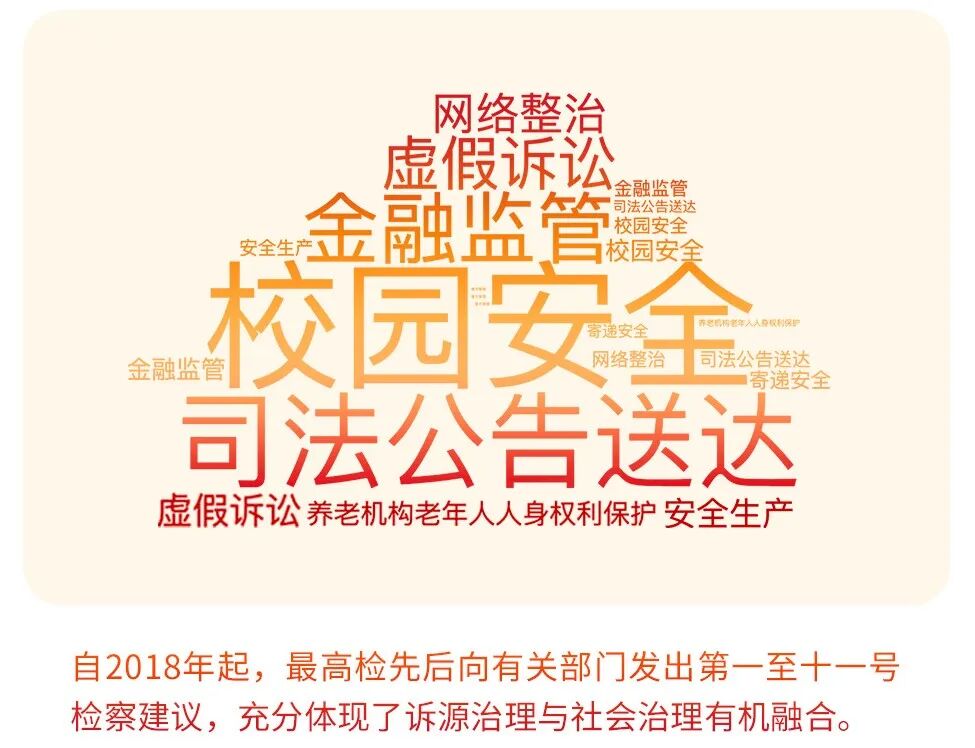 自2018年起,乳交 先后围绕校园安全、司法公告送达、金融监管、窨井盖管理、虚假诉讼、网络整治、寄递安全、安全生产、养老机构老年人人身权利保护等向有关部门发出第一至十一号检察建议,充分体现了诉源治理与社会治理的有机融合。